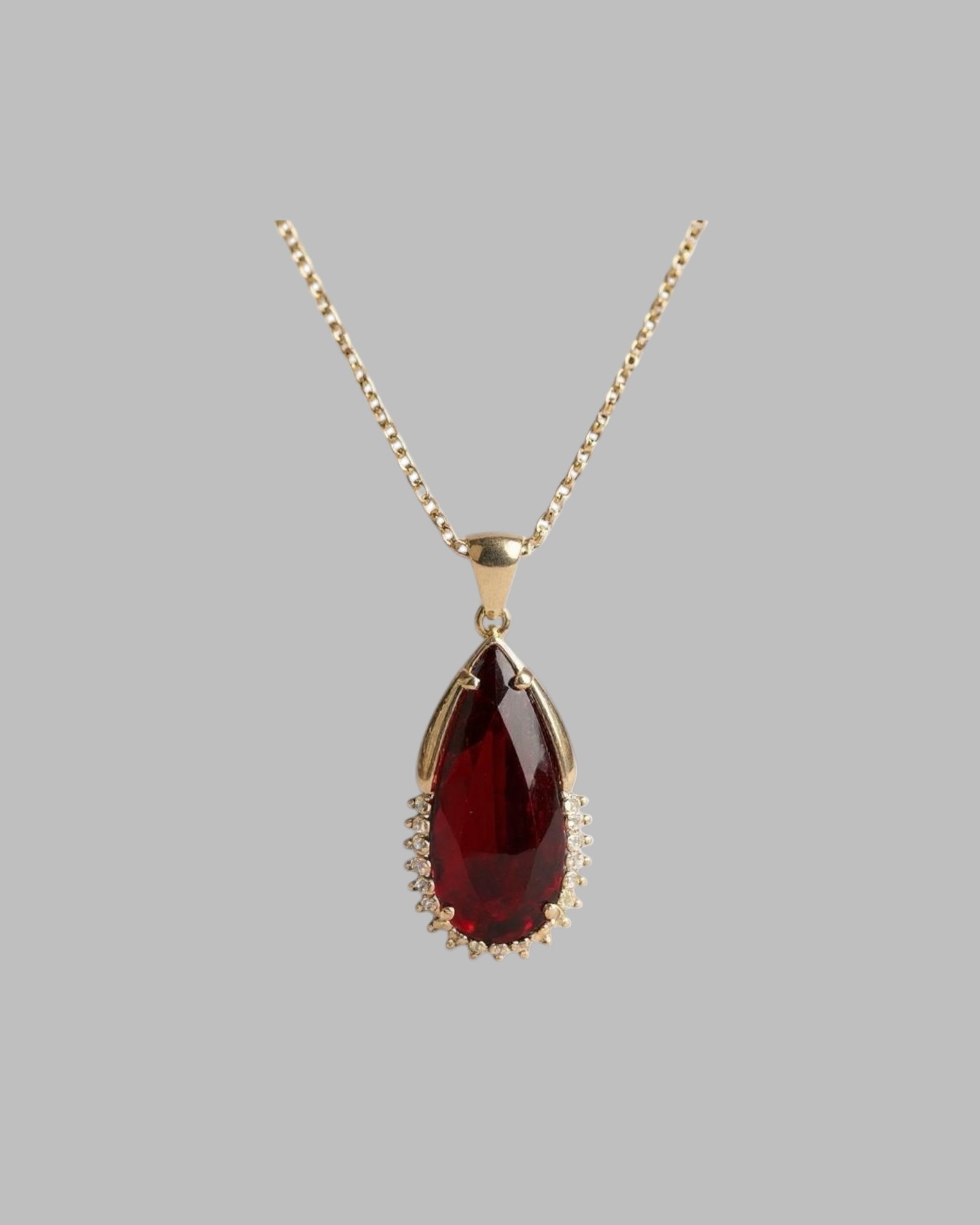 18kt Gold Pendant with Claret Red Drop Garnet and Diamond Accents