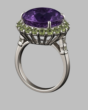 18kt white gold with Amethyst 5.0ct and 1.50ct Peridot.